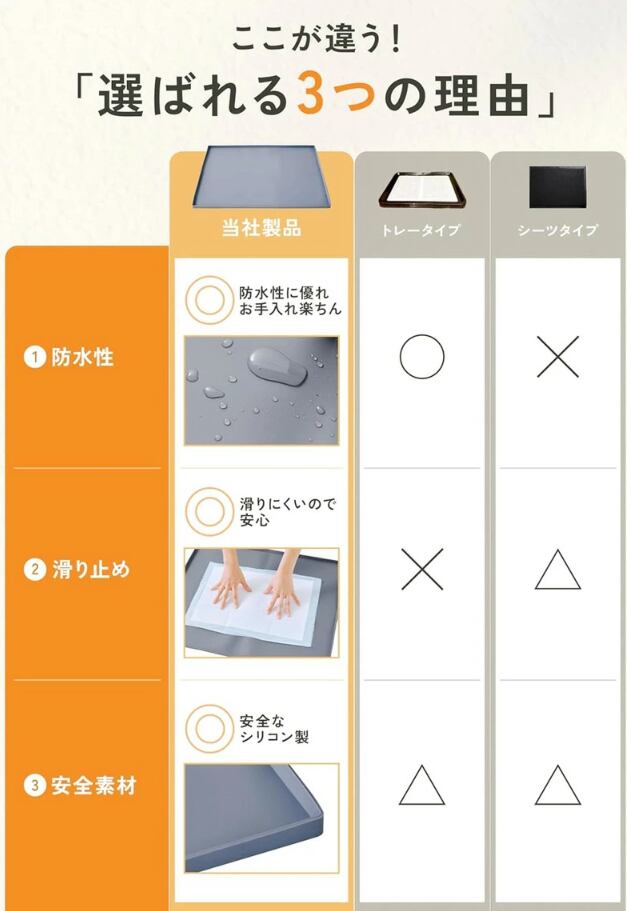 【ペットのためのやさしい素材】 愛犬の健康を最優先に考え、高品質シリコン素材を使用したマット。有害物質を一切含まず、皮膚がデリケートな犬や足腰の弱いシニア犬にも安心して使用できます。柔軟性と耐久性に優れた設計で、爪が当たっても傷つきにくく、滑らない表面とフラットな構造が快適な暮らしをサポートします。大切な家族であるペットに、安心して使える製品をお届けします。<br>