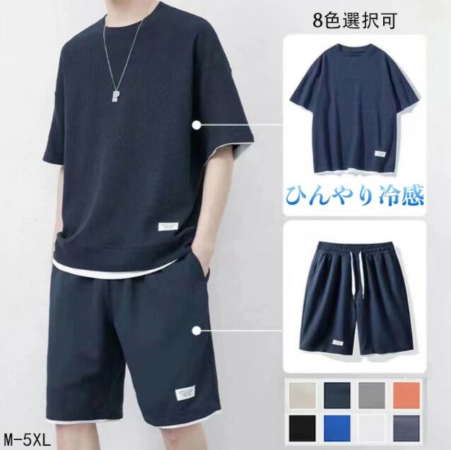 2024新登場 セット メンズ ファッション 上下2点セット 半袖 Tシャツ ショートパンツ 半ズボン 接触冷感 スポーツ 無地 夏 カジュアル ルームウェア 部屋着 ゆったり ダークグレー ライドグレー ブラック ベージュ ネイビー M-5XL