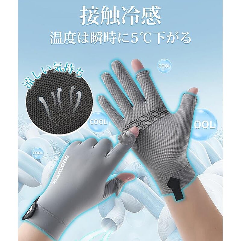 手袋 メンズ レディース 最新 夏用 薄型 冷感 紫外線対策 涼しい UV手袋 UVカット 接触冷感 スマホ対応 日焼け止め UPF50+ 手荒れ対策 軽量 滑り止め 通気速乾 釣り 通勤 自転車 運転 3つのスタイル ブラック グレー ブルー 男女兼用
