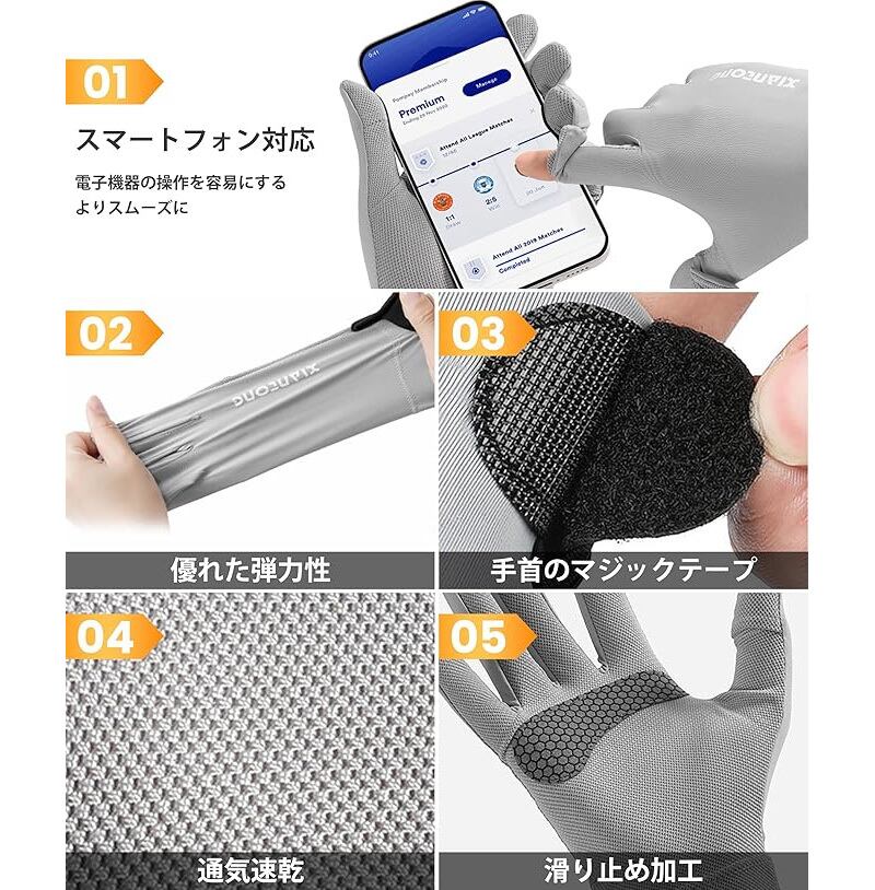 【日常生活に大活躍】:日焼け止め手袋、UVカット手袋、スマートフォン対応手袋。外出・ドライブ時の紫外線防止、手荒れ対策、乾燥 対策 など。男性も女性もご使用できる夏用UVカット手袋です。外出・ドライブ・自転車・通勤・通学・ウォーキング・ゴルフ・釣り時の紫外線防止に活躍します。シンプルなデザインで、誕生日・クリスマス・父の日等のプレゼントにもピッタリです。<br><br>