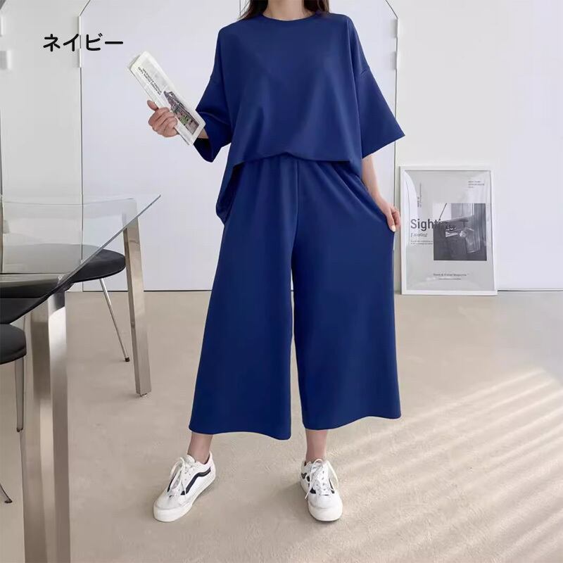新登場 セット レディース ファッション 上下2点セット セットアップ 半ズボン 半袖 ルームウェア 部屋着 お家ヨガウェア 韓国ファッション 無地 夏 カジュアル ゆったり 半袖 夏服 ネイビー カーキ色 ブラック グリーン M-2XL