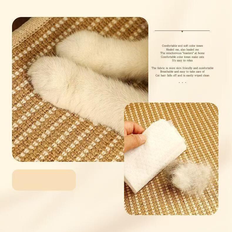 【ハンモックのデザイン】床から離れた設計で、床の湿気を遮断し、猫の健康を守ります。サイザル麻のござを組み合わせると、通気性がよく、サイザル麻の涼感を保つのに効果的です。<br>