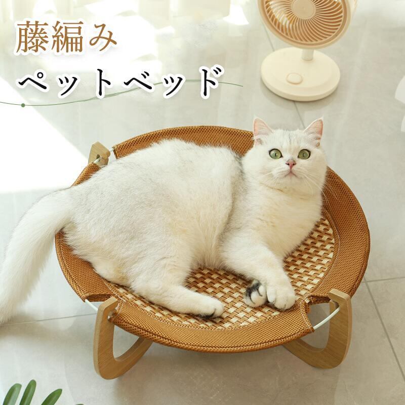 猫 ベッド ペットベッド ハンモック 猫 犬 犬猫兼用 2サイズ 耐荷重10KG 夏 藤編み ござ 涼感 ひんやり ぐっすり眠る 洗える 寝床 安定な構造 取り外し可能 通気性 組立簡単 折りたたみ 室内 戸外