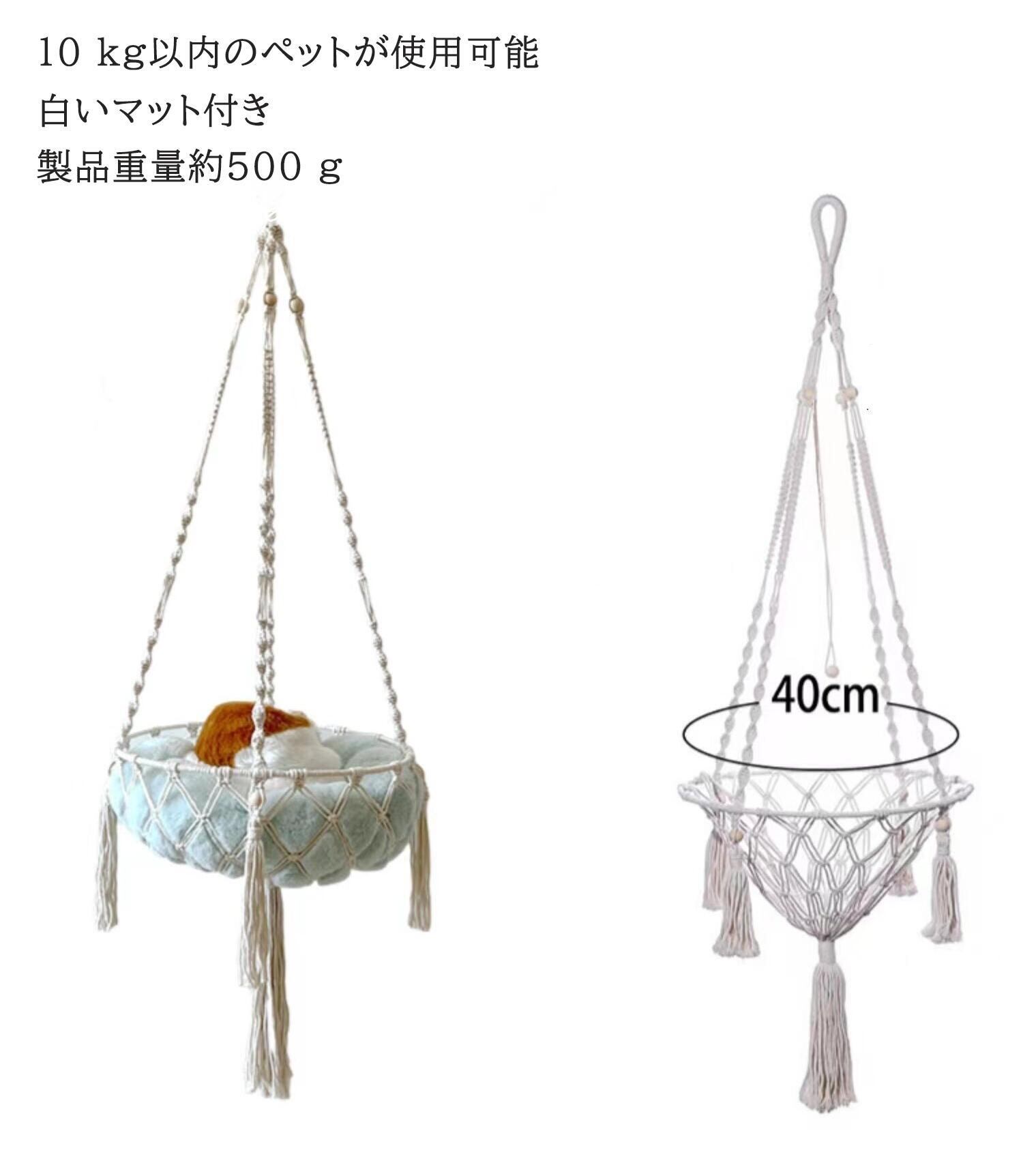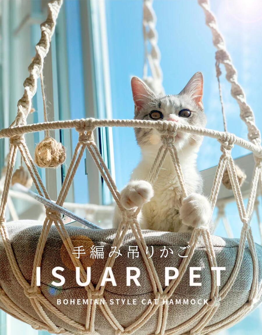 2025新作 ペット用 手編み吊りかご マット付き ネコ 猫 春夏 洗える マット ペット 猫 子犬 小型犬 夏用 ペット 猫小屋 巣 休憩 ペット休憩対応 10 kg以下のペットに対応 シンプル 簡単 エレガント ブランコ 春 夏 秋 冬 通気性