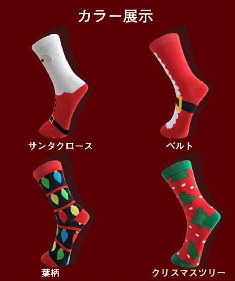 クリスマス面白いノベルティ靴下 男性 電球サンタツリー柄 カジュアル チューブソックス ギフト サンタ靴下
