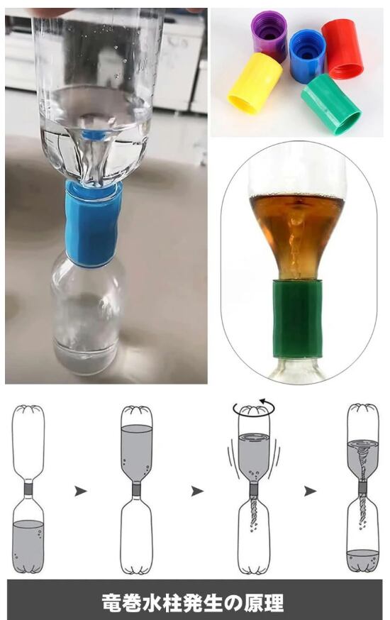 【5個セット】新作 5個 竜巻 渦ボトル 水 科学 サイクロン 実験 サイクロンチューブボトル接続 ボルテックス作り トルネードボトル 科学実験 物理学 自宅 サイクロンチューブ学習 プラスチック製