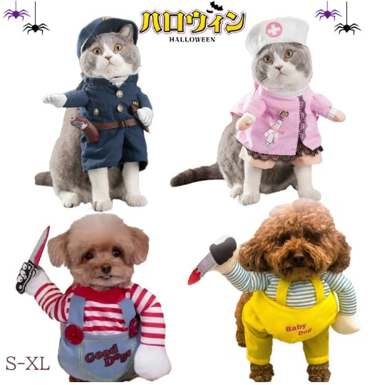 新作 ペット変身コスチューム 立ち上がり型 ペット用 犬猫用 おもしろコスチューム ハロウィン 記念写真 パーティー クリスマス 看護師 警察官 ネイビー ピンク レッド イエロー S-XL