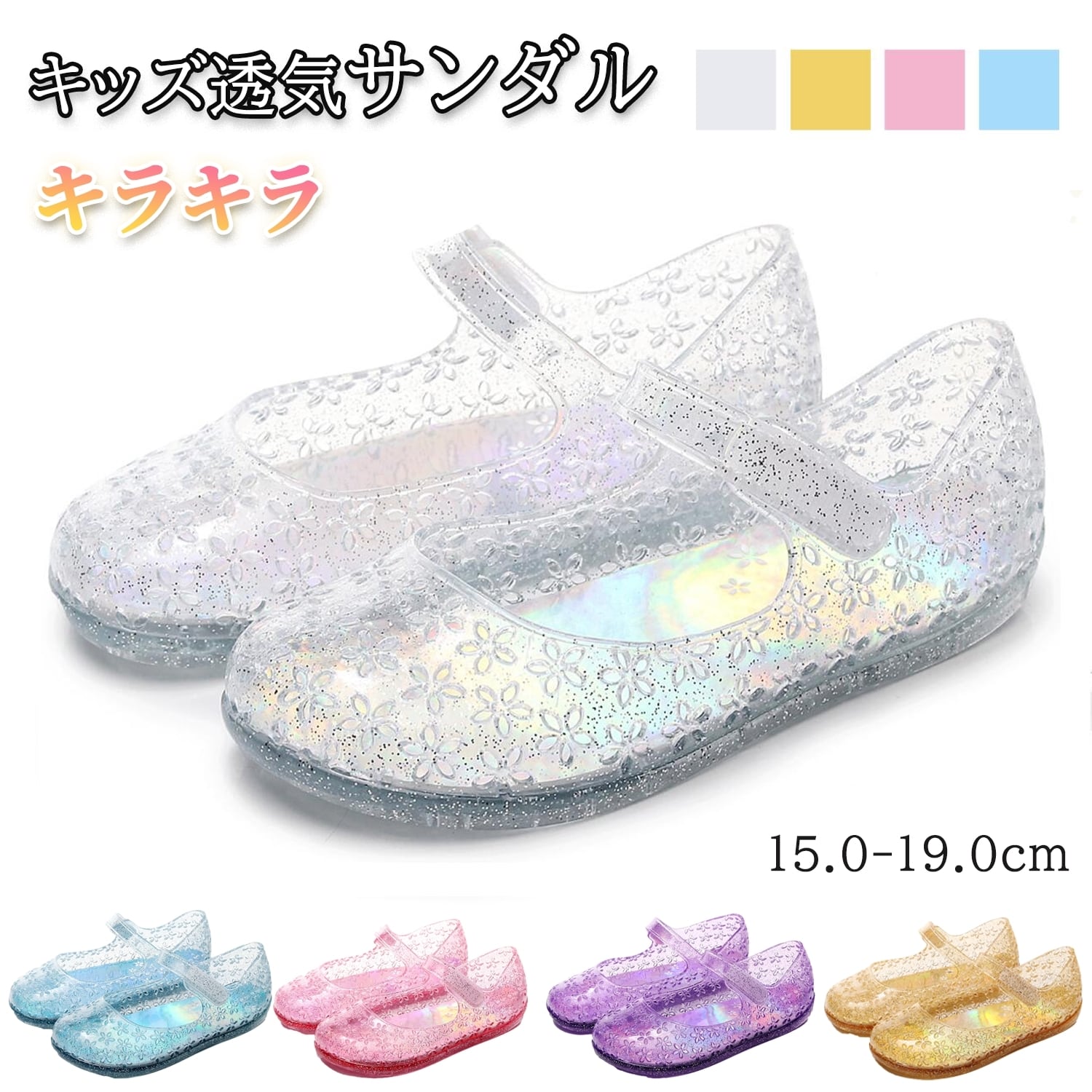 キッズ クリアサンダル きらきら 靴 子ども サンダル PVC 夏 お出かけ 美脚 超軽量で歩きやすく ローヒール 痛くない 柔らかい 疲れない 歩きやすい 走れる フォーマル 幅広 おしゃれ レディース 疲れにくい 15cm-19cm