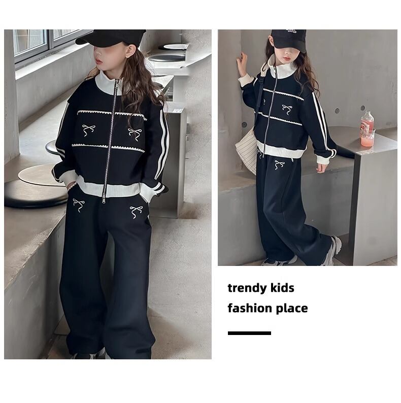 新登場 子供服 キッズ 女の子 カジュアルスーツ かわいい セットアップ リボン 切り替え ワイドパンツ 秋服 長袖 トレーナー スポーツパンツ 子供 上下セット スウェット スウェットパンツ キッズ カジュアル 韓国 お洒落 女の子服 大きいサイズ 120-170cm