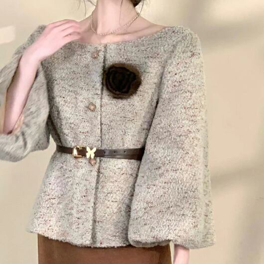 春秋 冬 3点セット レディース ファーアウター ハイネックニット スカート セットアップ やさしい オフィスカジュアル 着痩せ 保温 通勤 デート 冬 コーディネート 楽 卒業式 入学式 ママ オフィス 制服 ビジネス OL ブラウン S-4XL
