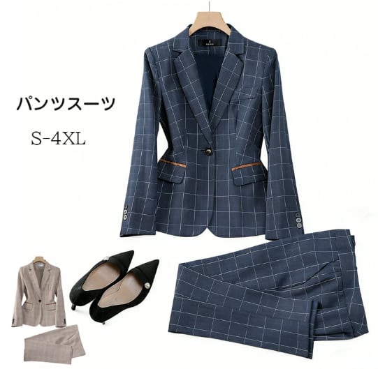春秋 パンツスーツ レディース ママスーツ チェック柄 卒業式 卒園式 通勤 就活 制服 通学 面接 入学式 入園式 結婚式 セットアップ ビジネス フォーマル 大きいサイズ OL オフィスカジュアル 女性用スーツ ブラウン ブルー