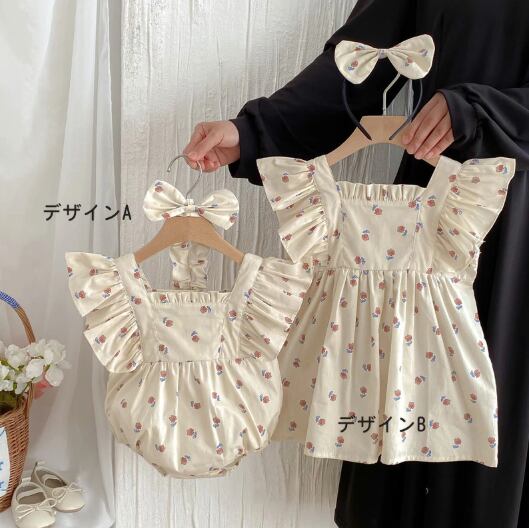 夏新作 ベビーボディスーツ ベビーガール ベビー服 女の子 レース付きワンピース 姉妹お揃い プリンセス風 花柄レースワンピース 姉妹コーデ 姉妹お揃い お誕生日 幼稚園 キッズ服 遊園地 ベビー用 アクセサリー付き 66cm 73cm 80cm 90cm 90cm-140cm