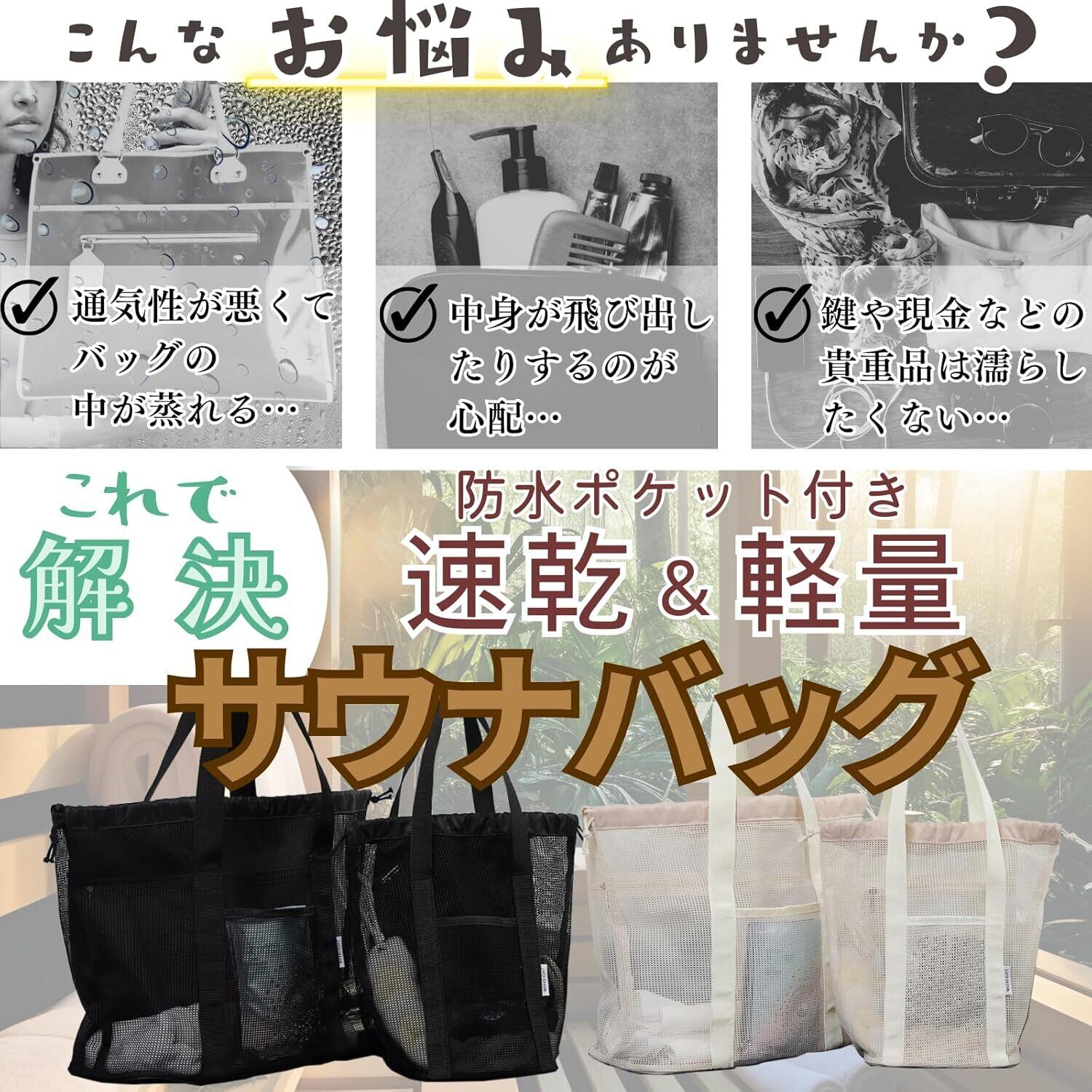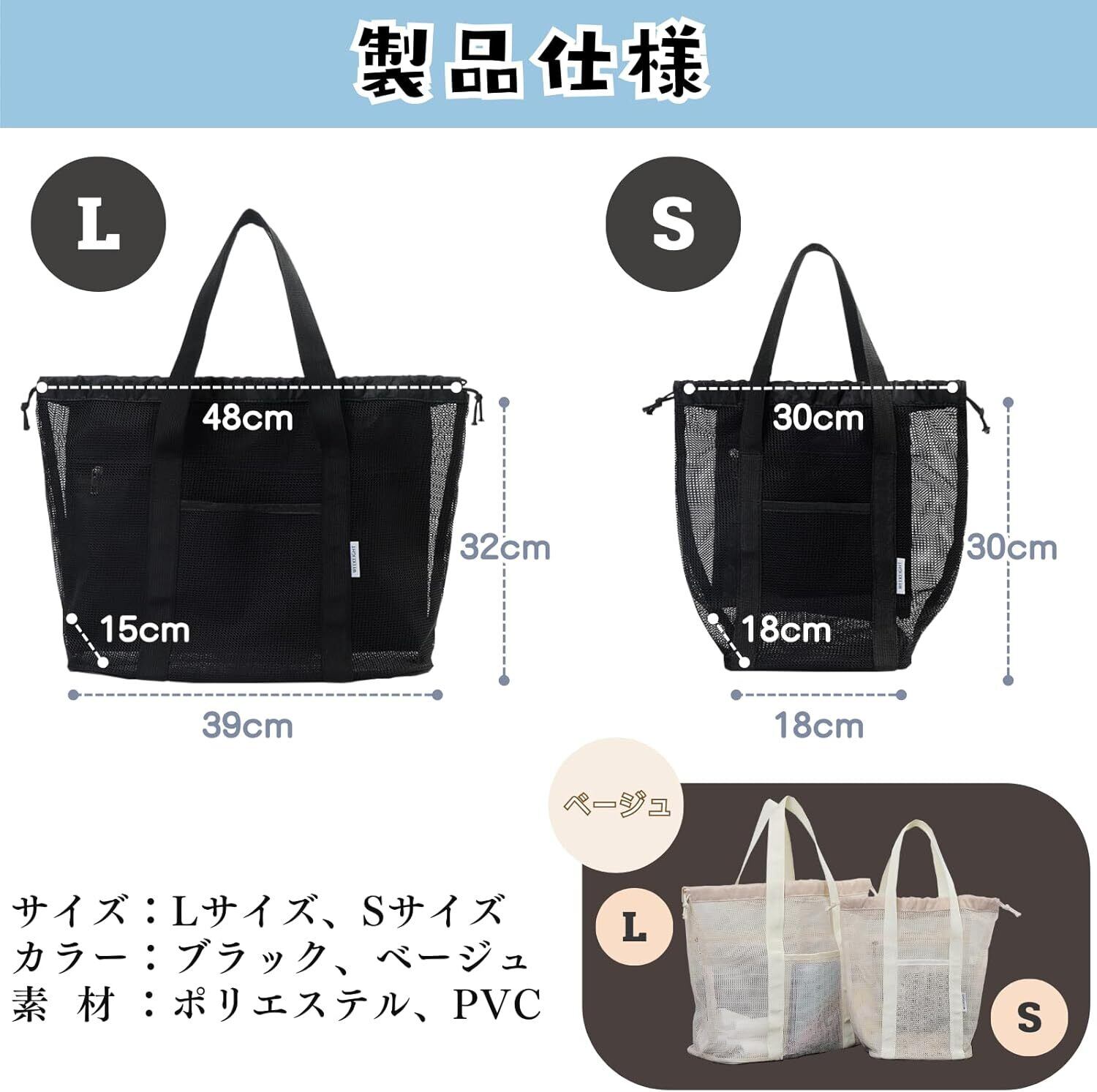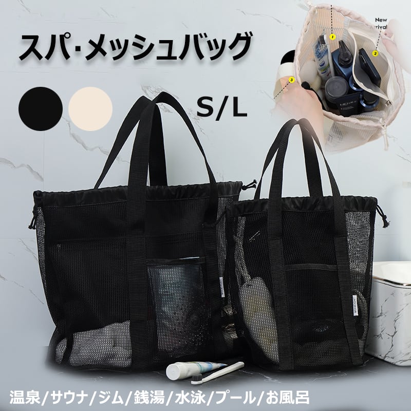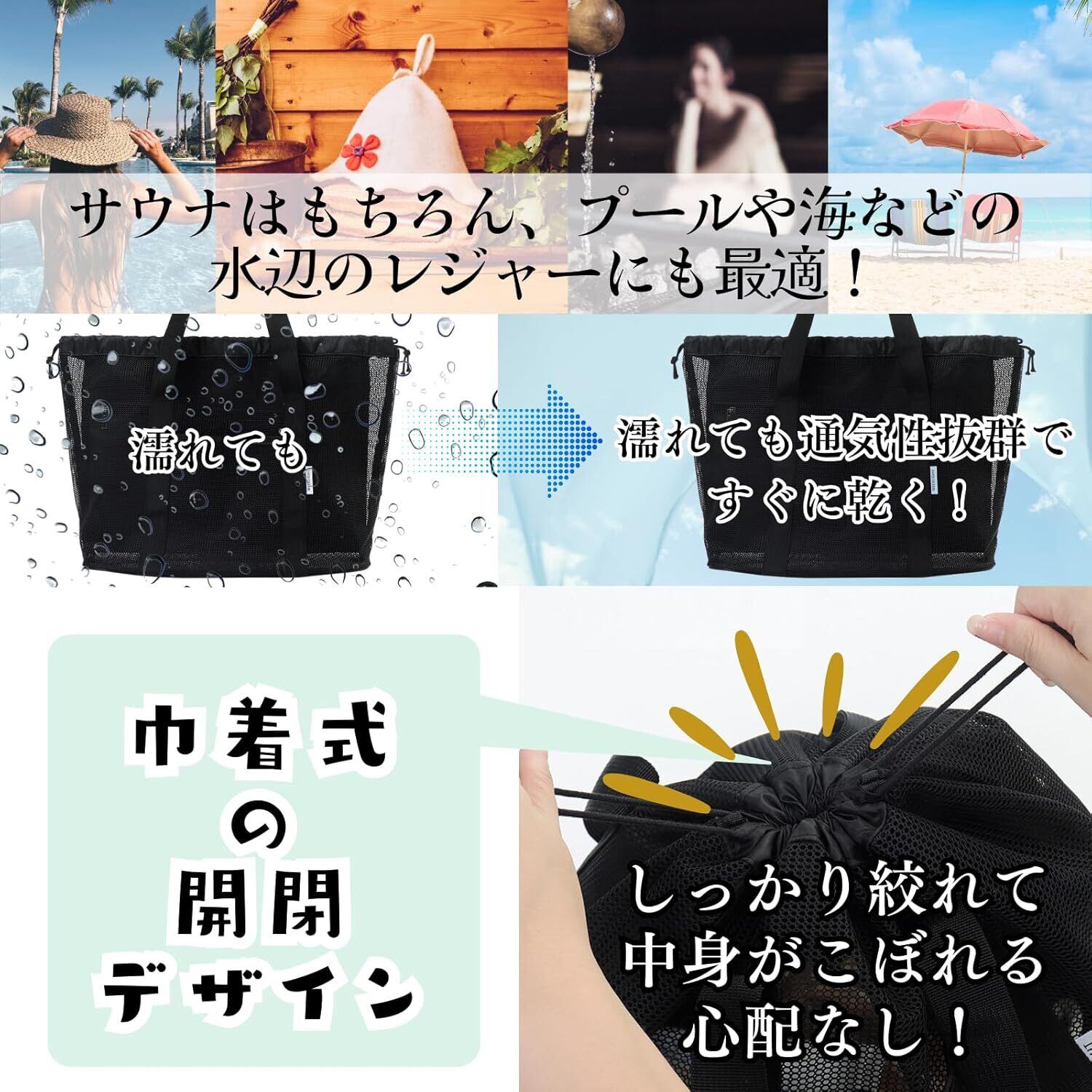 ビーチバッグ スパバッグ メッシュバッグ 防水ポケット付き 温泉バッグ サウナ ジム 銭湯 水泳 プール ジム 温泉 大人 お風呂 砂遊び 水遊び アウトドア