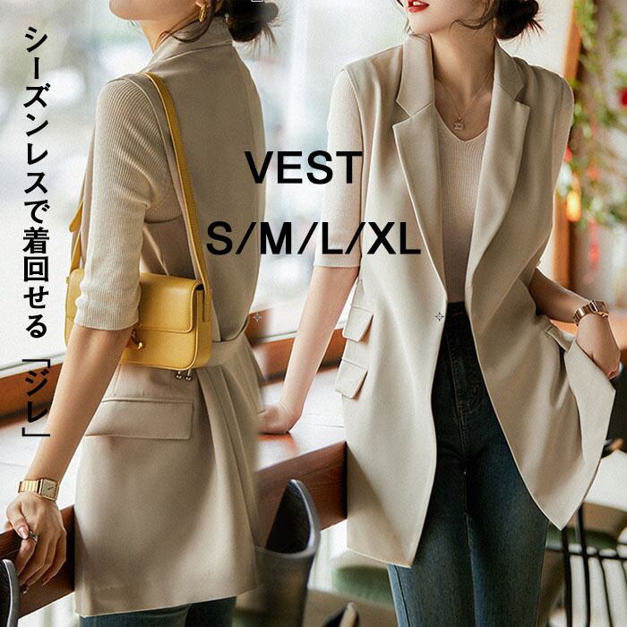 ロングベスト ジレ ロングジレ レディース ベスト ジレベスト スーツジレ トレンチコート コート 前開き ノースリーブ アウター 春夏 セットアップにも ロングベスト コート トレンチ 無地 ジレ 入園式 卒園式 入学式 卒業式 ママスーツ S-XL