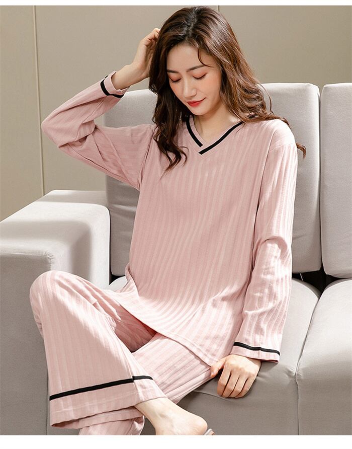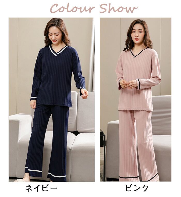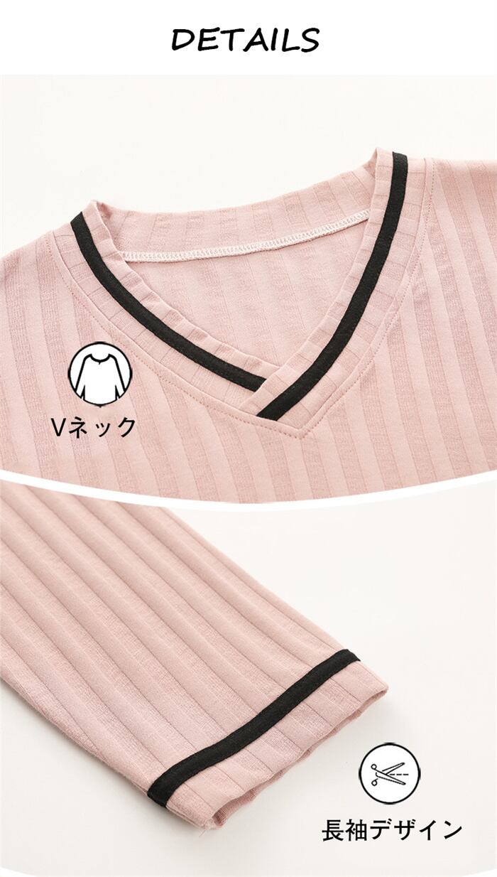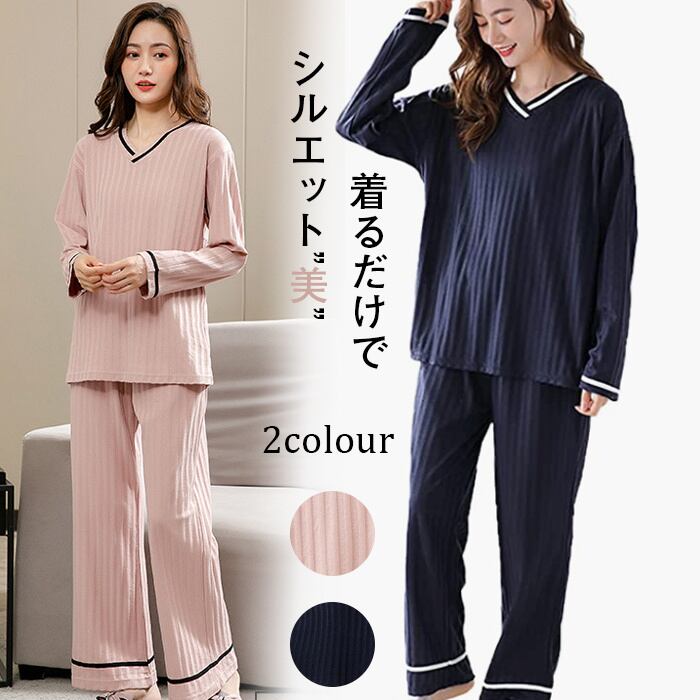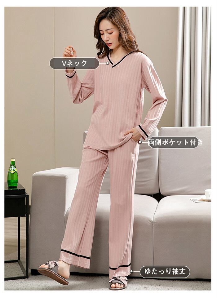 ルームウェア スタイル美 パジャマ 部屋着 レディース 上下セット Vネック 長袖 可愛い 光沢感 上品 おしゃれ 春 夏 秋 吸水速乾 通気 薄手 ポケット付 幅広デザイン お泊り 旅行 ピンク ネイビー M-3XL