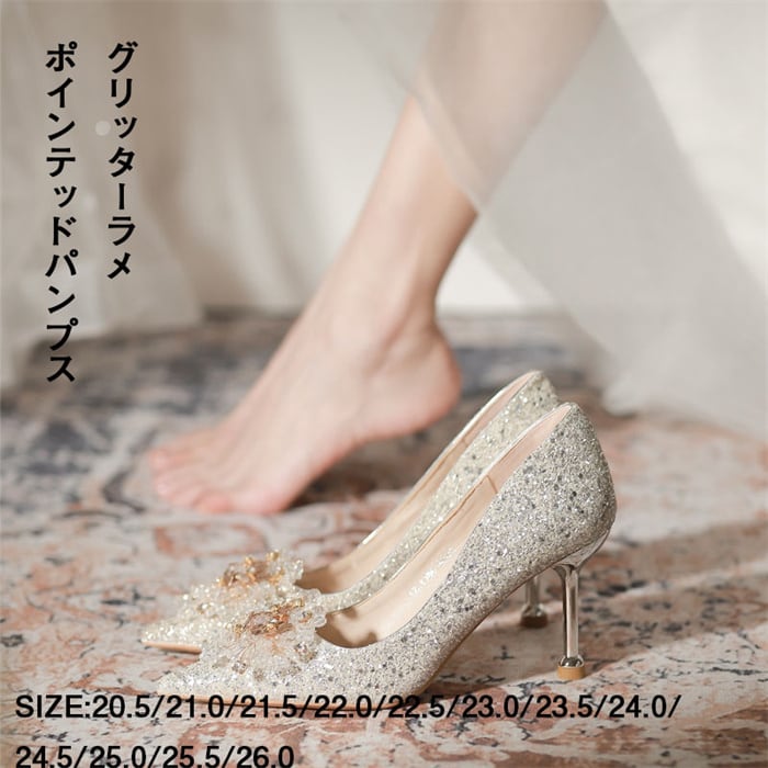 パンプス ハイヒール レディース ピンヒール ラメ キラキラ パーティーシューズ 美脚パンプス ベーシック シンプル 華やか フォーマル パーティー 新年会 結婚式 披露宴 謝恩会 お呼ばれ 小さいサイズ シルバー