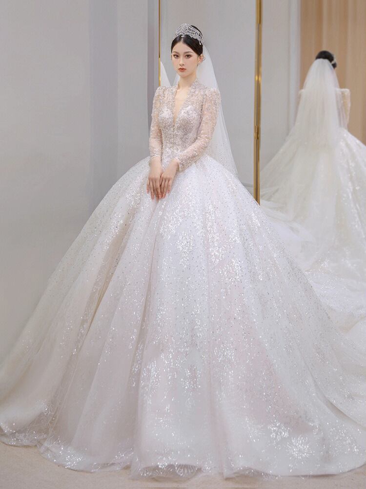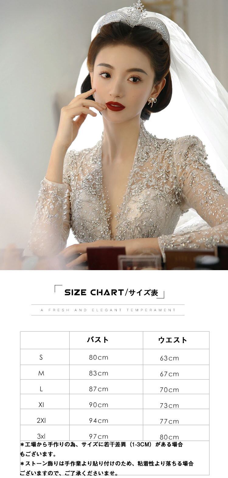 新作 ウエディングドレス レディース 長袖 Vネック ワンピース 結婚式 花嫁 二次会 レース ドレス 少女 女性 腰縛り メッシュ フォーマル パーティー ロングワンピース 大人 演奏会 発表会 大きいサイズ S-3XL