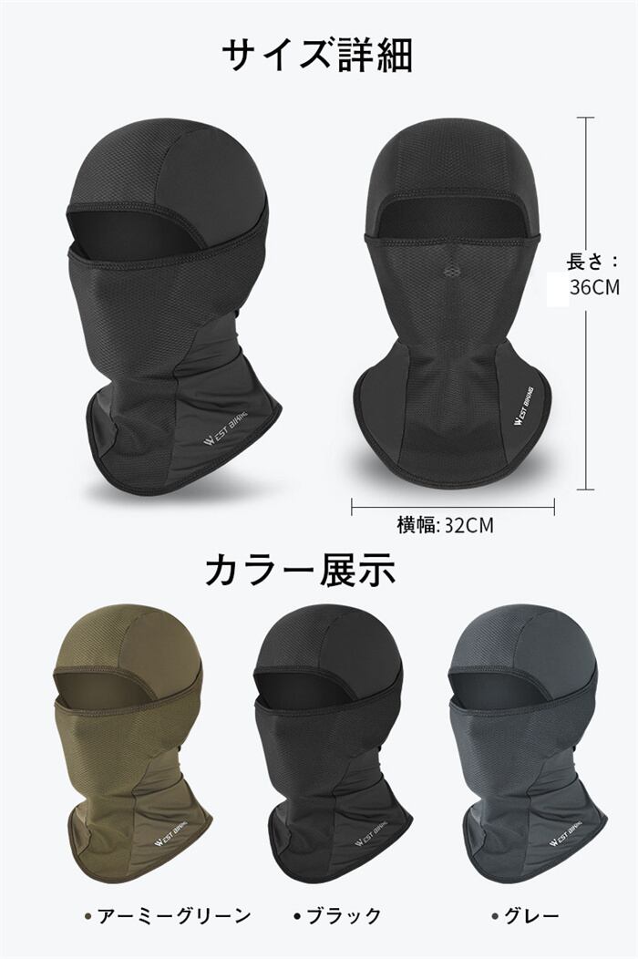 バラクラバ 夏用 フェイスマスク 冷感 ネックガード 目出し帽 通気 吸汗速乾 バイク サイクリング アウトドアスポーツ用