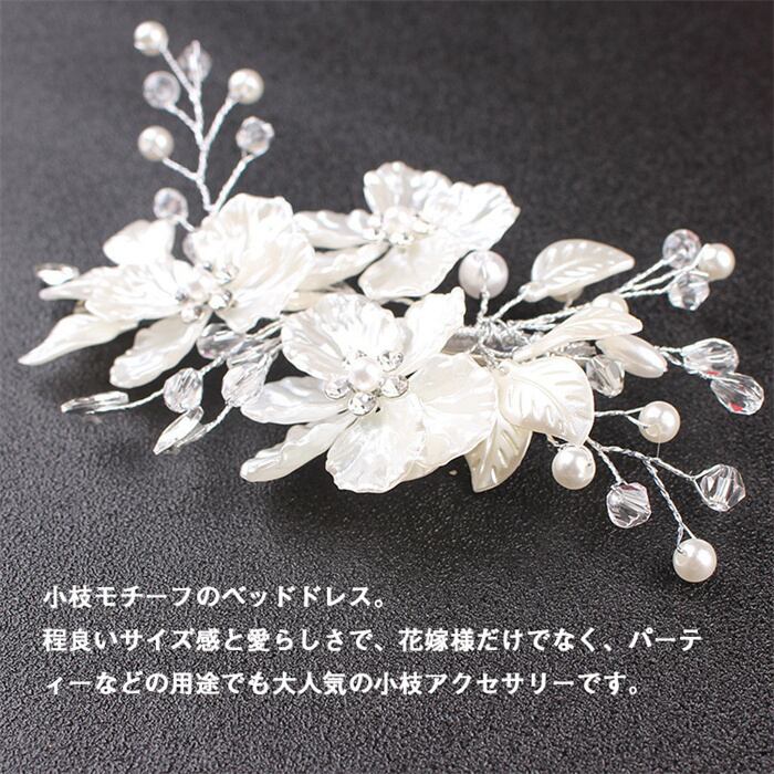 髪飾り 結婚式 パーティー パール 小枝 花 花嫁 クリップ ウェディング ストーン 舞台 発表会 成人式 卒業式 ヘアアクセサリー ヘッドドレス ギフト ホワイト