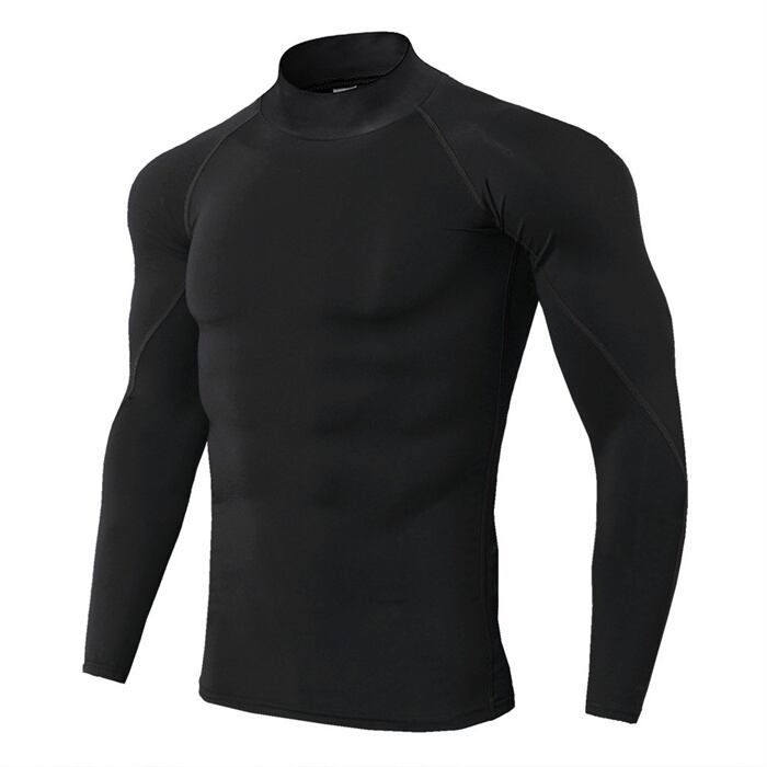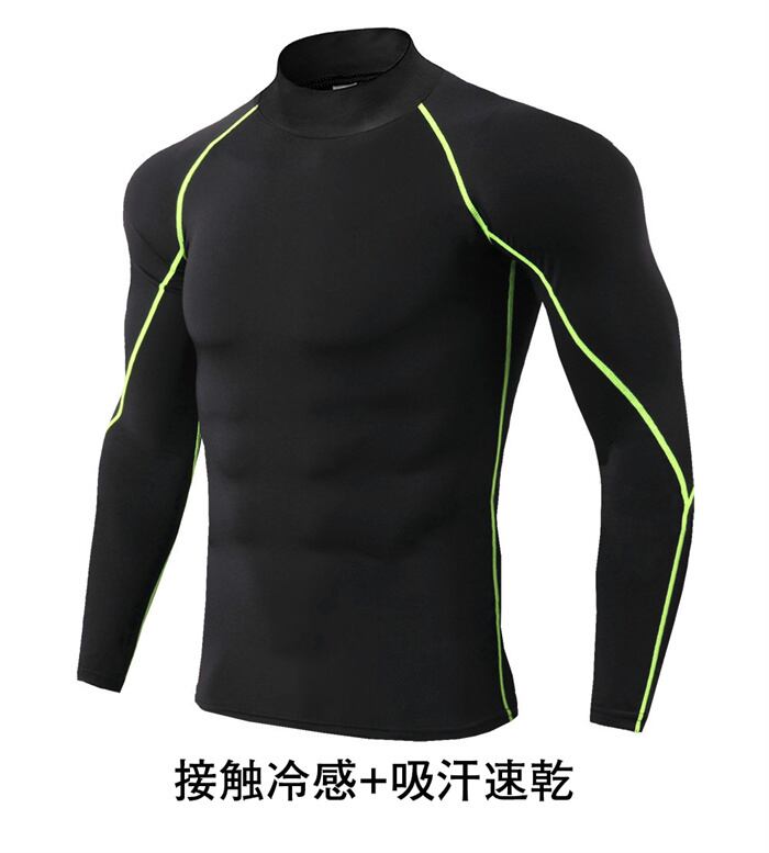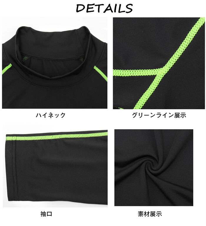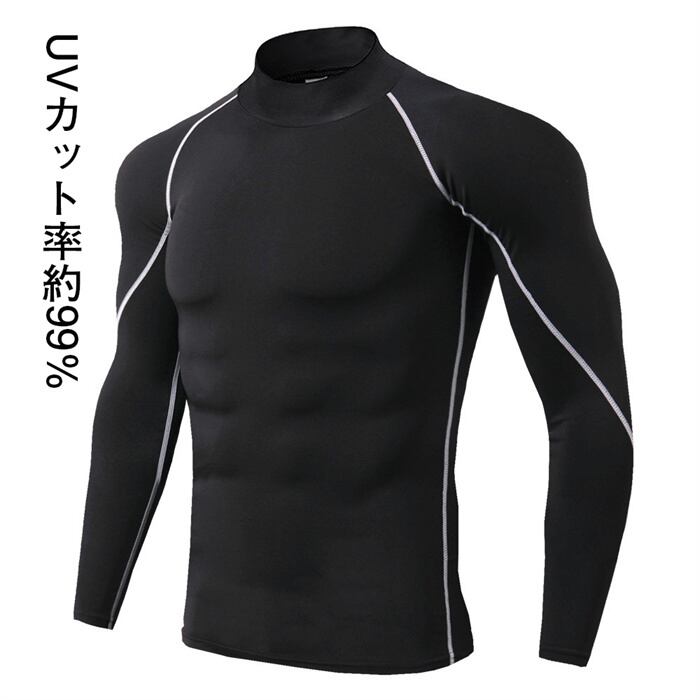 夏用インナー 長袖 ハイネック フィットネス長袖Tシャツ Tシャツ 接触冷感 吸汗速乾 消臭 コンプレッション UVカット メンズ ブラック 黒 S-3XL