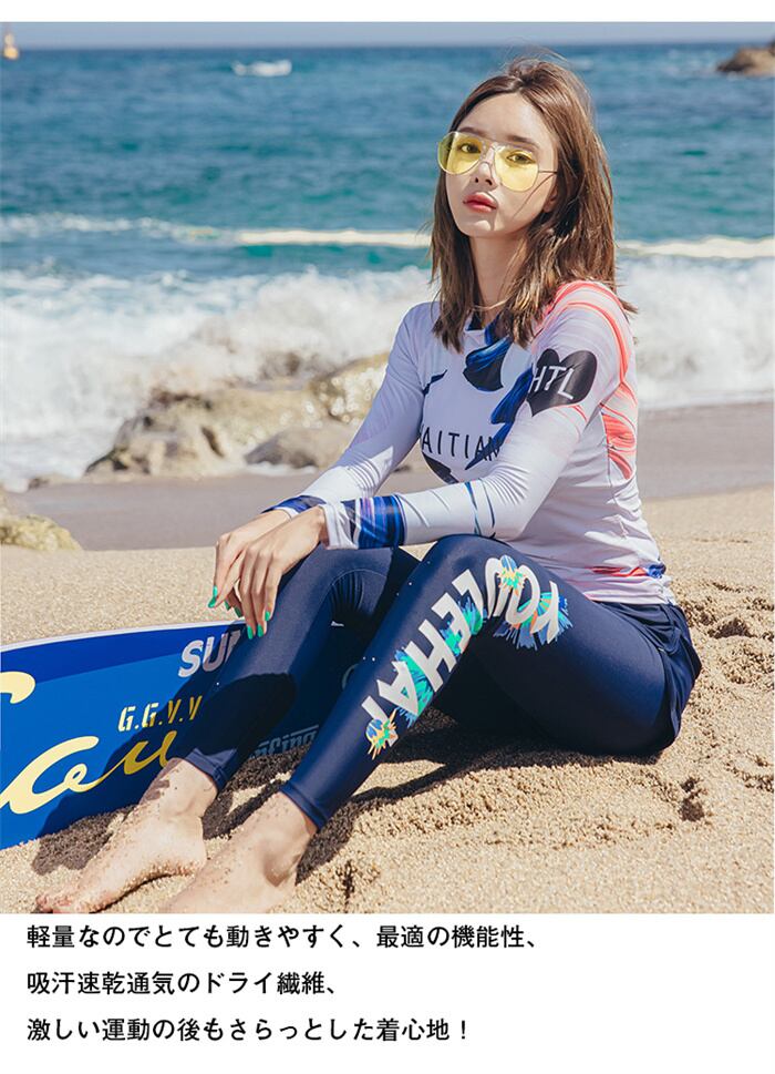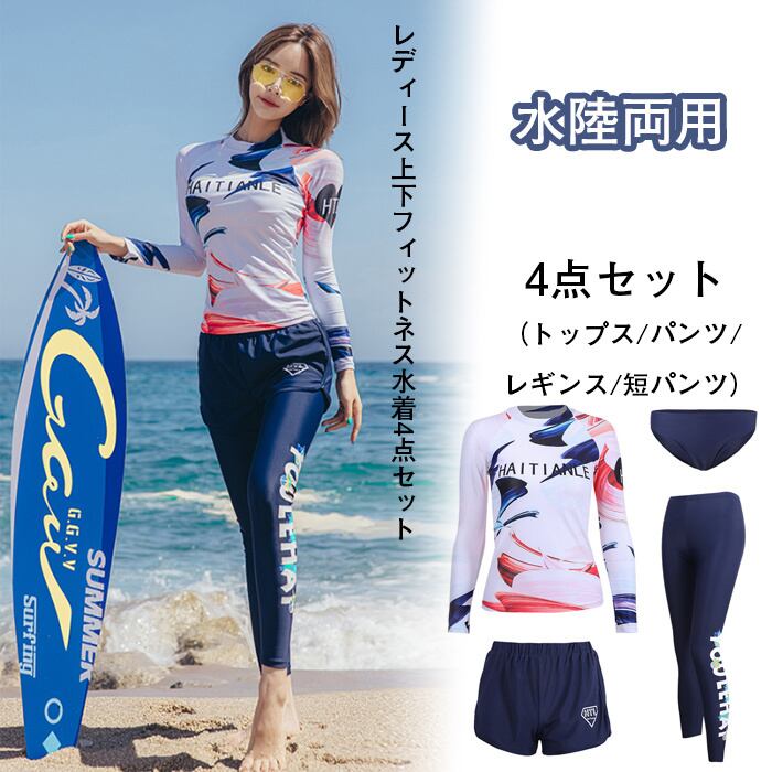 ラッシュガード レディース 水着 レギンス 長袖 セパレート スイミング パンツ ブラ 4点セット フィットネス 女性 温泉 ビーチ 水泳 UVカット 水陸両用 吸汗速乾 M-2XL