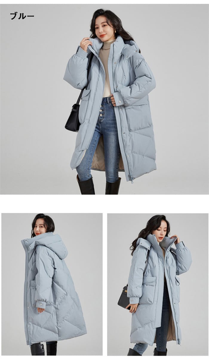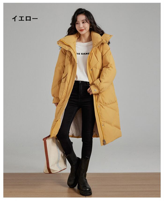 ダウンジャケット レディース 大きいサイズ フード ダウンコート アウター 秋 冬 ゆったり 秋服 冬服 暖か ダウン ダウン90% 20代 30代 40代 ブラック オフホワイト イエロー ブルー グリーン S M L