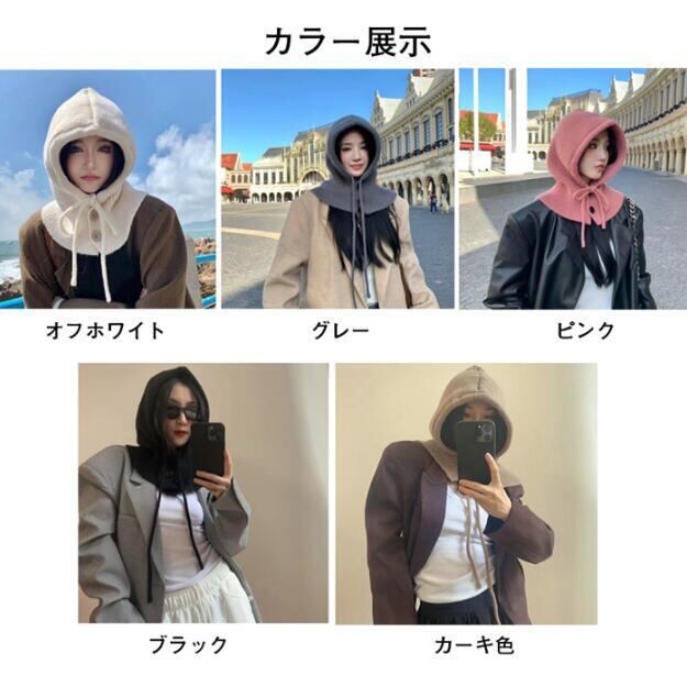ニットバラクラバ ゆるゆる大きくフード レディース 男女兼用 調節リボンボタン付き ニット帽 ネックウォーマー マフラー ハット 帽子 キャップ 可愛い 自転車通勤通学 お出かけ 秋冬 防寒保温