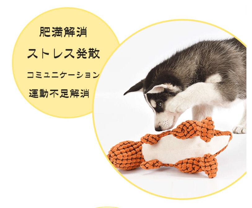 犬の噛むおもちゃは、音が鳴るタイプの知育玩具♪<br>