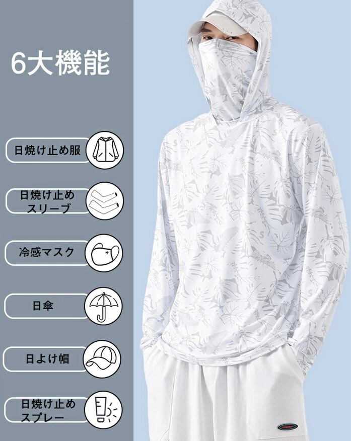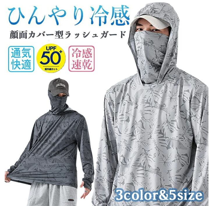【INSで大人気】ラッシュガード メンズ 長袖 パーカー おしゃれ 顔面カバー型 uvカット 接触冷感 ラッシュガード uv パーカー 冷感 速乾 薄手 軽量 水着 サマーパーカー UV ビーチ プール キャンプ 紫外線対策 日焼け防止 uv 体型カバー 釣り 山登り 大きいサイズ