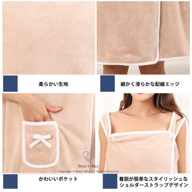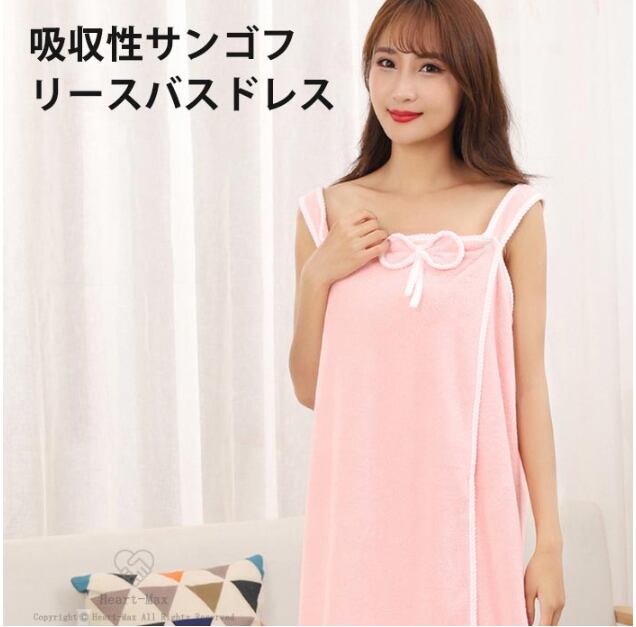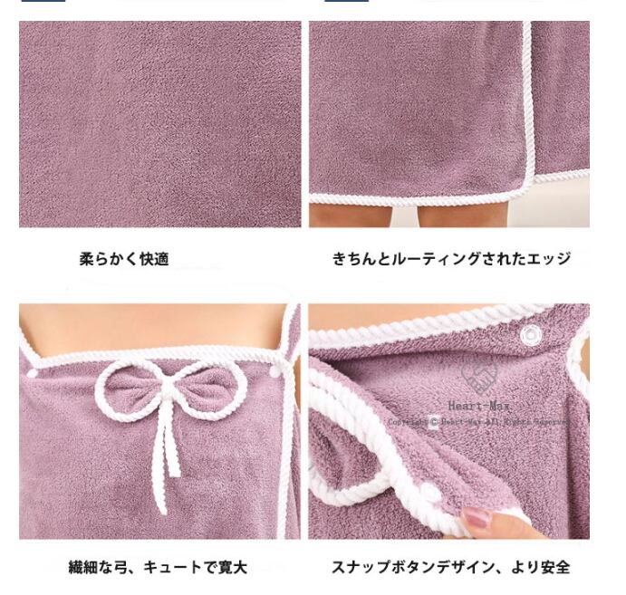 ※肩がけボタンでサッと着て、ズレ落ちません。 マイクロファイバー素材だから、肌触りが柔らかくふわっふわっモコモコで吸収性抜群! あなたを優しく包み込みます♪ 胸元リボンで可愛らしさUP。<br>