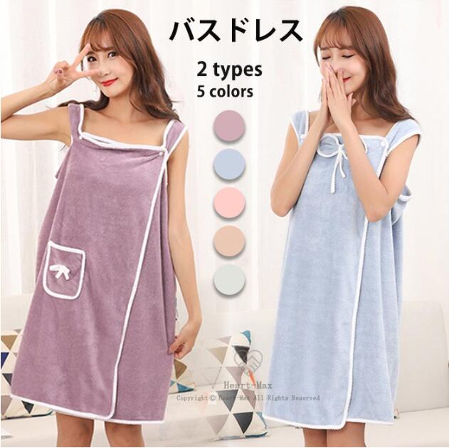 バスドレス バスタオル バスローブ レディース ウェアラブル ラップ 膝丈 寝間着 パジャマ ワンピース 吸水性 スパ 温泉 お風呂 プール 水泳 ビーチ シャワー ちょうネクタイ 柔らかい 可愛い 快適 落ちない 5colors