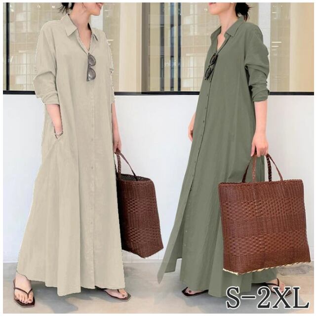 シャツワンピ ロングシャツ ワンピース ロングワンピース 春夏 秋 マキシ フレアワンピース レディース マキシワンピース シャツワンピース カーディガン きれいめ 長袖 上品 ゆったり 通気性 快適 シンプル 無地 ナチュラル ガジュアル 通勤 送料無料