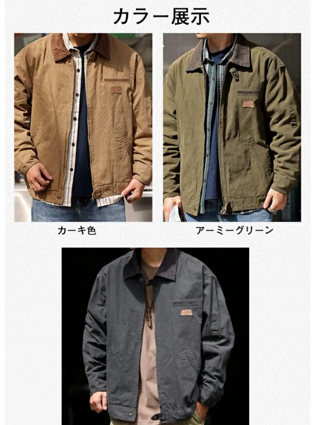 デトロイトジャケット ワークジャケット ジャングルジャケット メンズ ジャケット 春コート 長袖 カーキ色 ダークグレー アーミーグリーンS-4XL