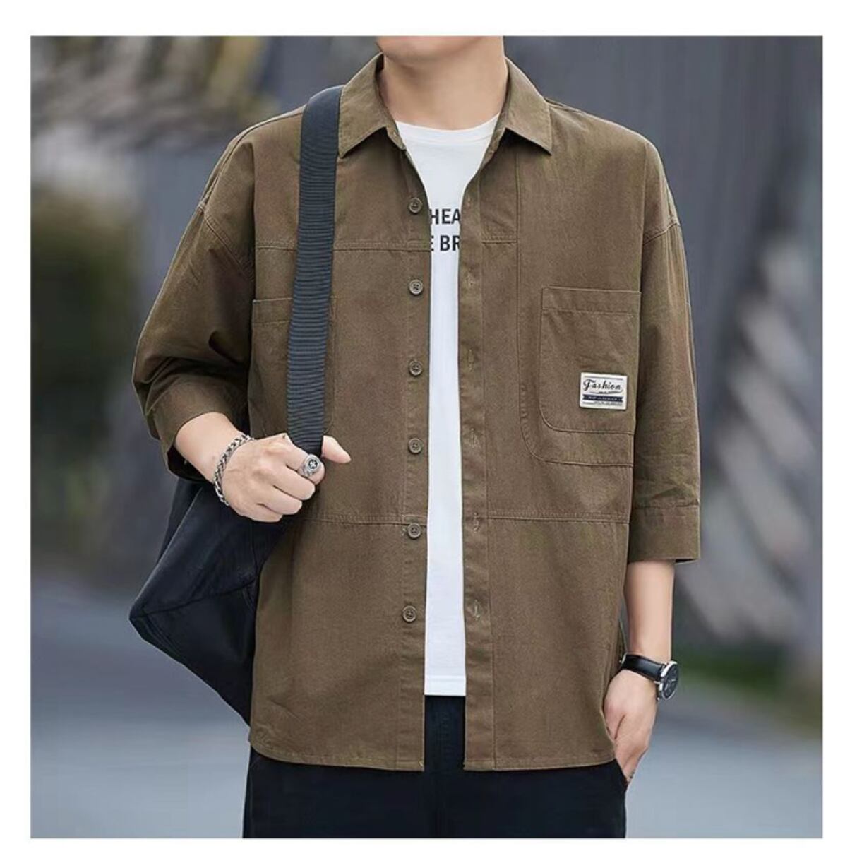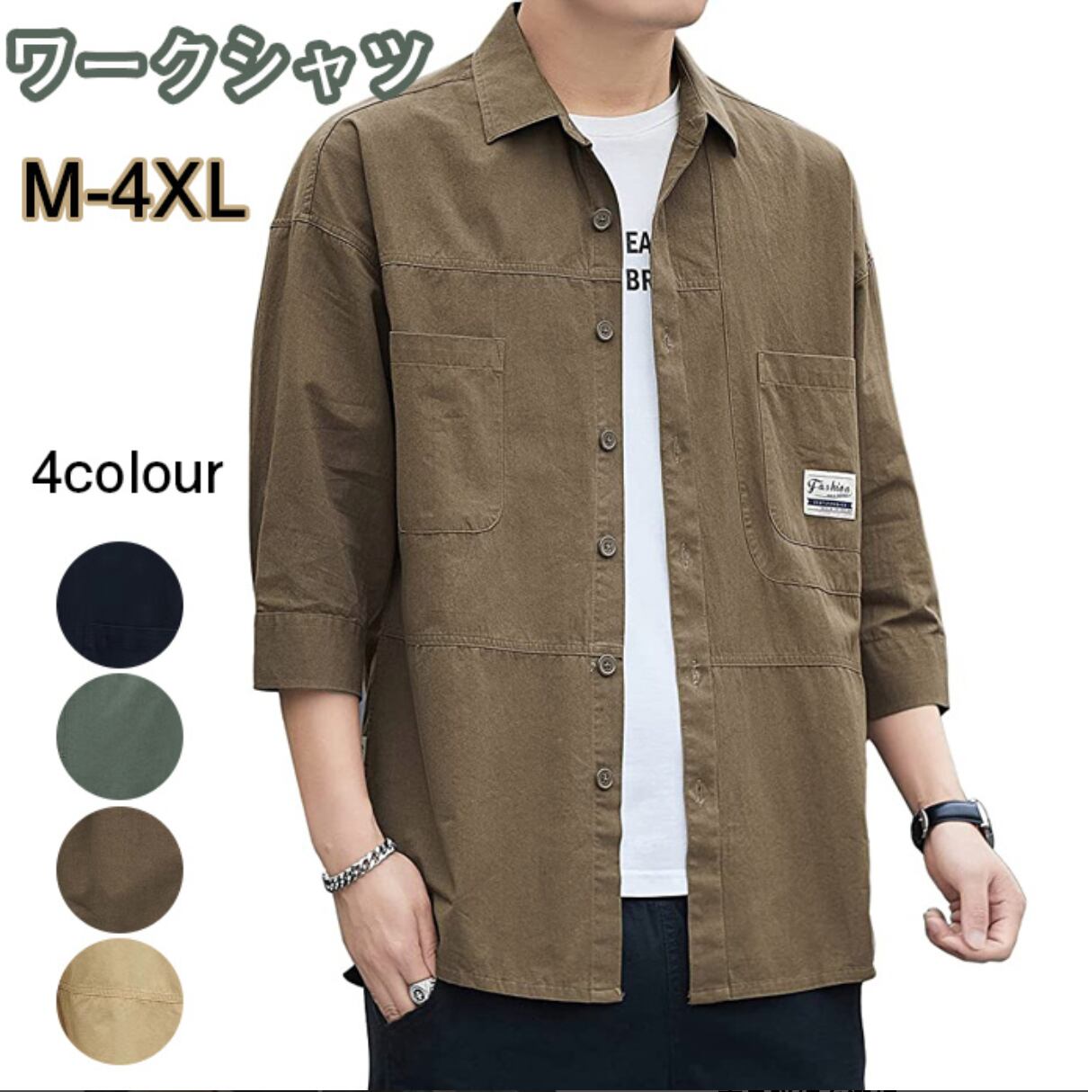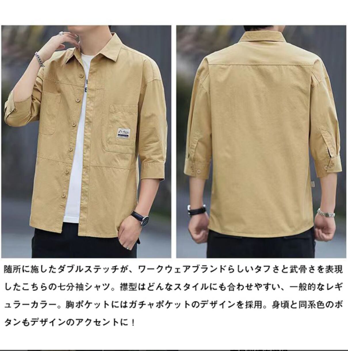 ワークシャツ メンズ 7分袖 シャツ かっこいい ミリタリーしゃつ 無地 夏服 しちぶそで 上着 ワーク系 襟付き トップス スリムフィット 大人 アメカジ 服 綿100% おしゃれ 切り替え 春 夏 秋