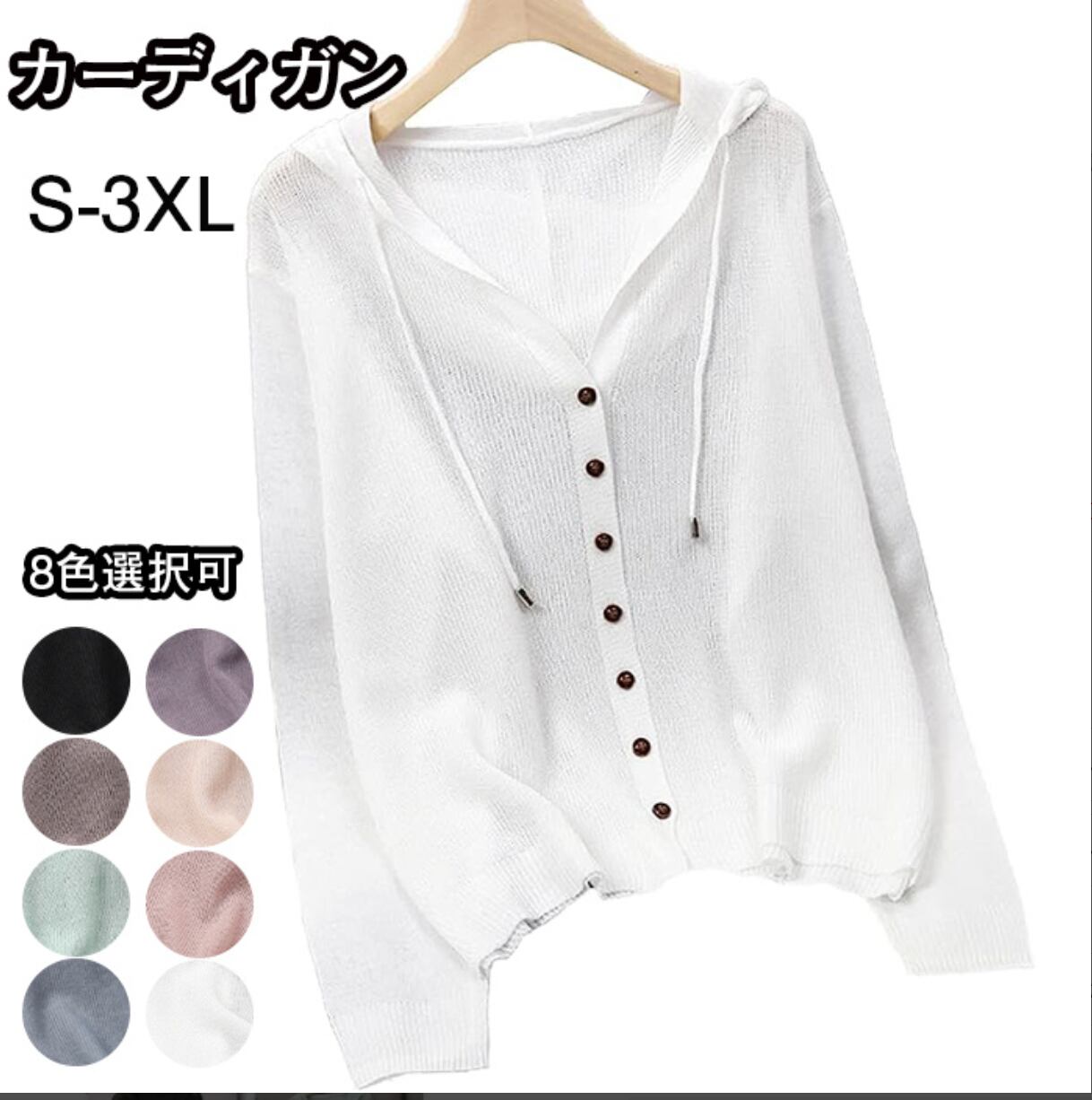 カーディガン 羽織り レディース ニット 透かし編み 薄手 長袖 ショート丈 フード付き 無地 春夏 カジュアル