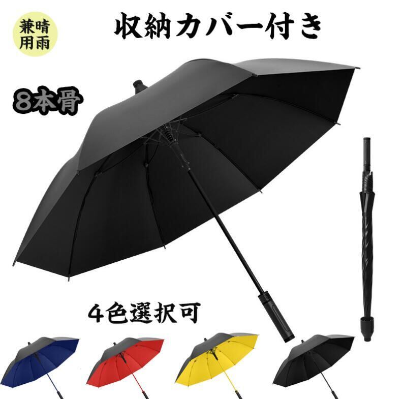 2024新作 長傘 メンズ 収納カバー付き 防水カバー付き 8本骨 耐風撥水 大型 強化防風 強風 突風 強い 梅雨 嵐 台風 晴雨兼用 撥水傘布 お洒落 4色選択可