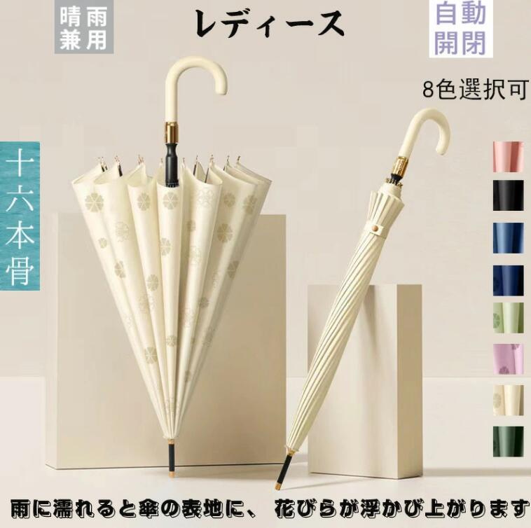 2024新作 傘 レディース 16本骨 花柄 ワンタッチ 雨傘 長傘 和風傘 耐風撥水 自動 大型 強化防風 晴雨兼用 撥水傘布 おしゃれ かわいい 実用的 8色選択可