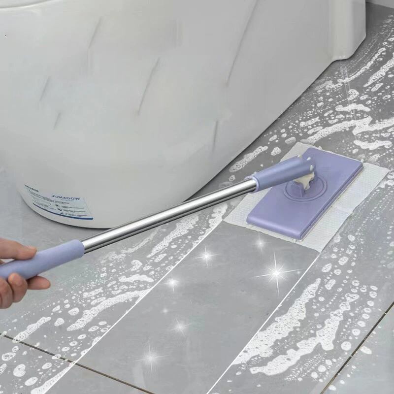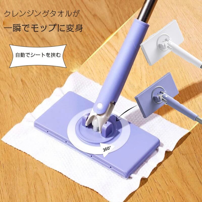 乾湿両用 モップ 自動 雑巾を挟む クリップ付き リング フロー 洗面タオル 汚れない ハンドモップ 全自動 両面布 手洗い不要 延長されたポール設計 360°回転可能 再利用 ホワイト パープル