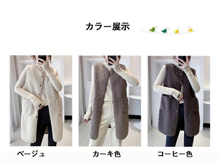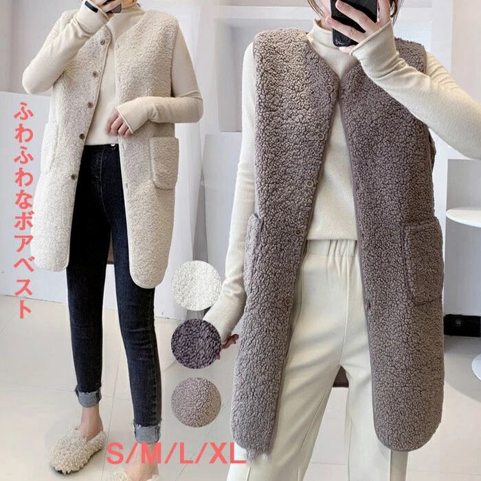 ボアベスト レディース ロングベスト ボアジレ ボア アウター ジャケット ベスト フリースジャケット アウター トップス ノースリーブ もこもこ 柔らかい ふわふわ 暖かい 羽織り 秋 冬 チョッキ ムートンベスト S-XL