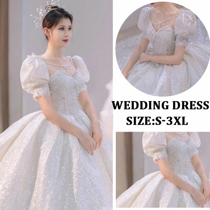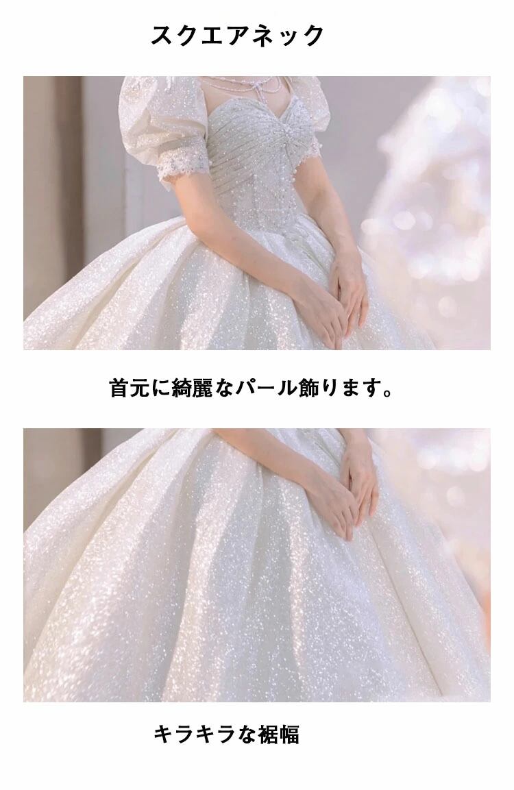 新作 ウエディングドレス レディース 半袖 パフスリーブ ワンピース 結婚式 花嫁 二次会 レース ドレス 少女 女性 腰縛り メッシュ フォーマル パーティー ロングワンピース 大人 演奏会 発表会 大きいサイズ S-3XL