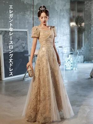 パーティードレス 総レース ロング丈 ワンピース ドレス 半袖 レディース 結婚式 二次会 演奏会 ロングドレス 袖あり 袖付き 花柄レース 大きいサイズ 大人 上品 20代 30代 40代 春 夏 秋 冬 XS-2XL