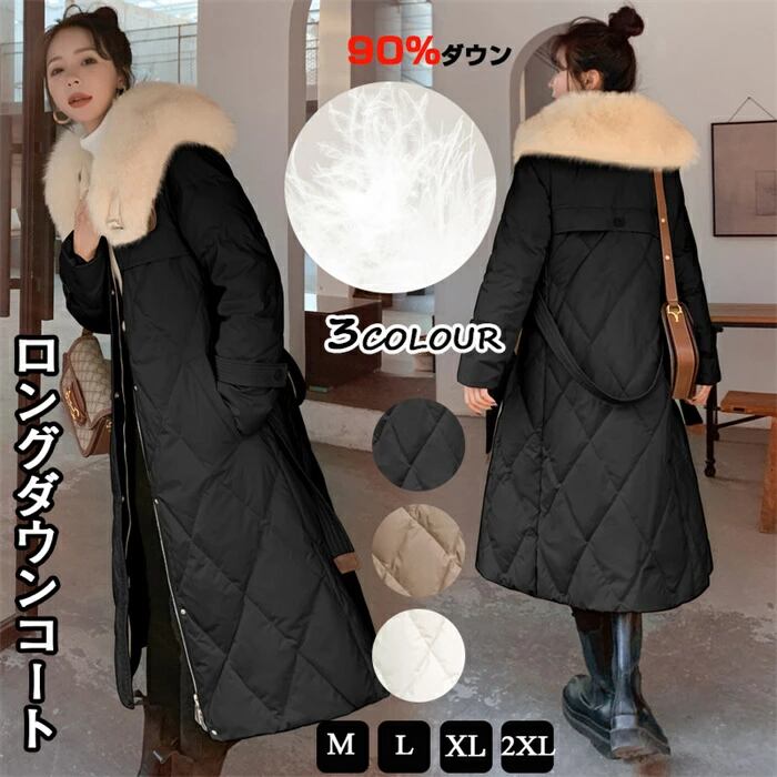 ダウンコート ロングダウンコート レディース コート ダウン90% 防水 ロング 冬 きれいめ ダウン 大きいサイズ ファー アウター ダウンジャケット 防寒対策 暖かい カーキ色 ブラック オフホワイト M-2XL