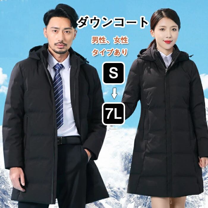 ダウンコート ダウンジャケット レディース メンズ コート フード付き フード取り外し可能 ダウン90% 防水 冬 膝丈 きれいめ ダウン 大きいサイズ ファー アウター 防寒対策 暖かい S-6XL