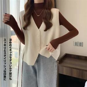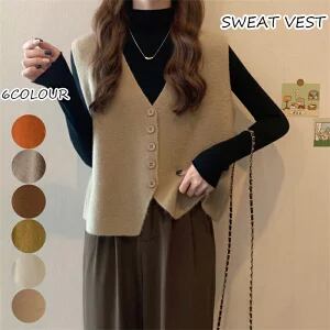 トップス ニット ベスト Vネック 6色 シンプル カジュアル 通学 学生 お揃い お出かけ 普段着 韓国ファッション 春 秋 冬 ニットベスト 無地 重ね着 白 カーキ色 イエロー ブラウン カーキグリーン オレンジ freesize