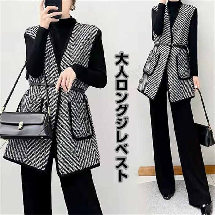 ジャケット レディース ベスト ジレ ベストジレ カーディガン ベルト付き カジュアル ビジネス 袖なし ノースリーブ お呼ばれ パーティー 服 服装 おしゃれ Vネック 春 夏 秋 冬 春夏 秋冬 黒 freesize