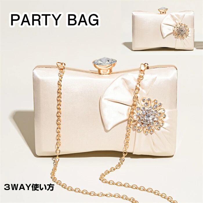 パーティーバッグ 結婚式 バッグ 3WAY ショルダーバッグ ハンドバッグ ストーン リボン おしゃれ クラッチバッグ フォーマル バッグ ハンドバッグ 披露宴 結婚式 ドレス 演奏会 二次会 成人式 同窓会 女子会 レディース シャンパン