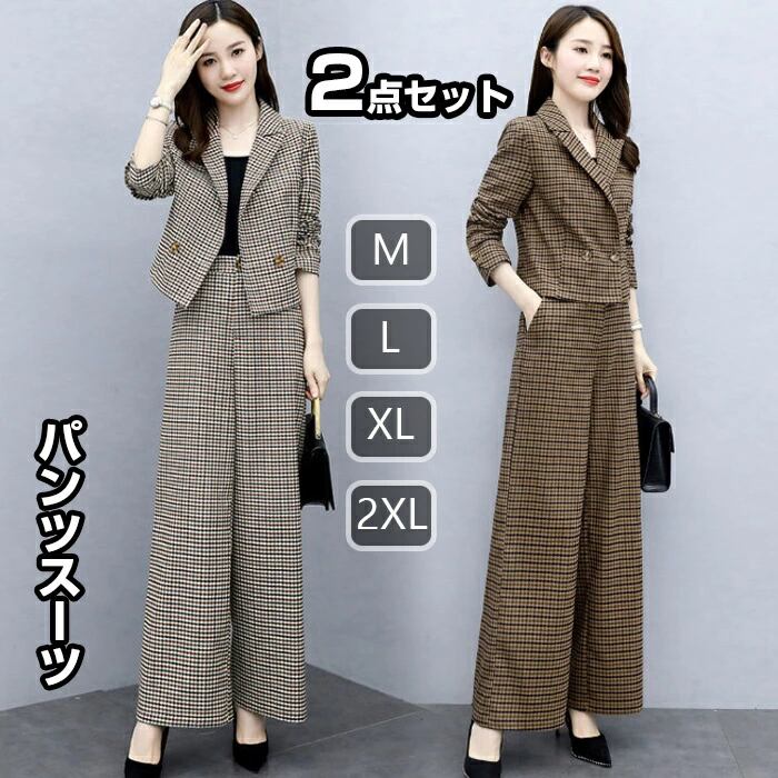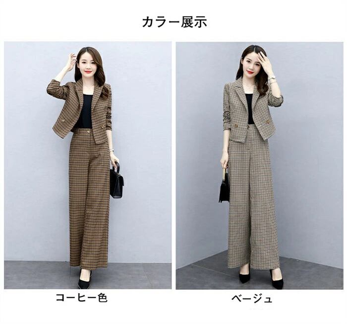 スーツ レディース セットアップ ワイドパンツ 入園式 卒学式 格子柄 洗える パンツスーツ ビジネススーツ 秋冬 リクルートスーツ レディーススーツ ストレッチ 大きいサイズ フォーマル 通勤 女性 コーヒー