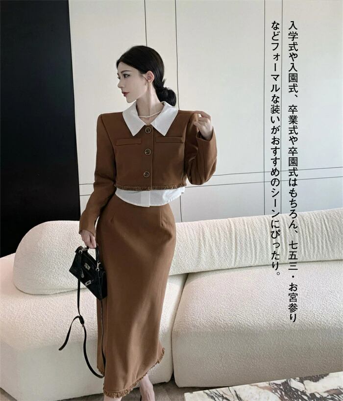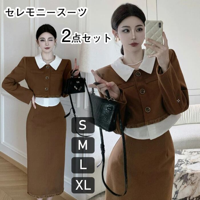 セレモニースーツ 入学式 卒業式 入園式 卒園式 セレモニー スーツ レディース お宮参り フォーマル 謝恩会 母 ママ おしゃれ 大人 結婚式 ツイード お呼ばれ ジャケット セット ブラウン ファッション 大きいサイズ 20代 30代 40代 S-XL