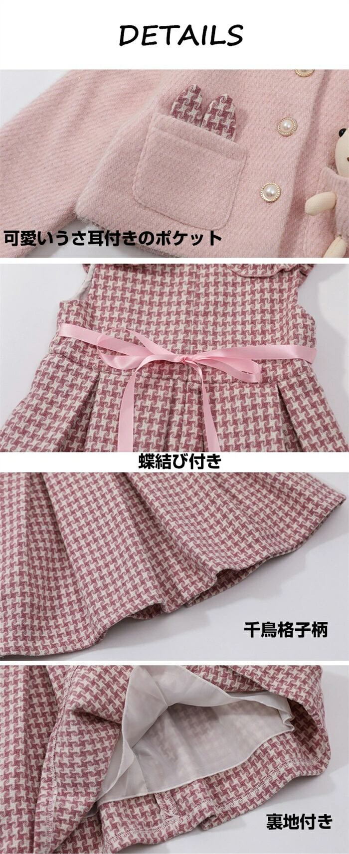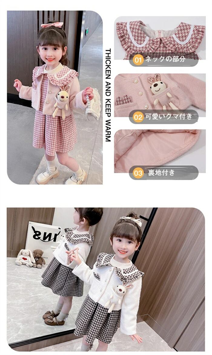 子供服 ワンピース セットアップ 千鳥格子 ツイードジャケット 長袖 入学式 入園式 七五三 卒園式 女の子 スーツ 子供服 子ども キッズ フォーマル ドレス 上品 結婚式 発表会 おしゃれ お出かけ ツイード