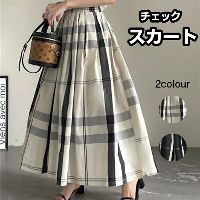スカート レディース ボトムス チェック 形状記憶 ボリュームスカート かわいい おしゃれ オトナかわいい 上品 ホワイト ブラック
